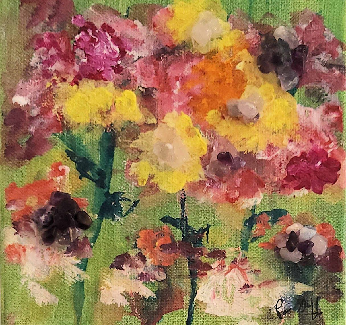 Such a great event. Two days of market fun, meeting new people, and seeing the creative work of fellow artists. Friday night was Paint Night at the museum. A room full of artists painting a flower arrangement, using a credit card as our painting tool. What a blast!