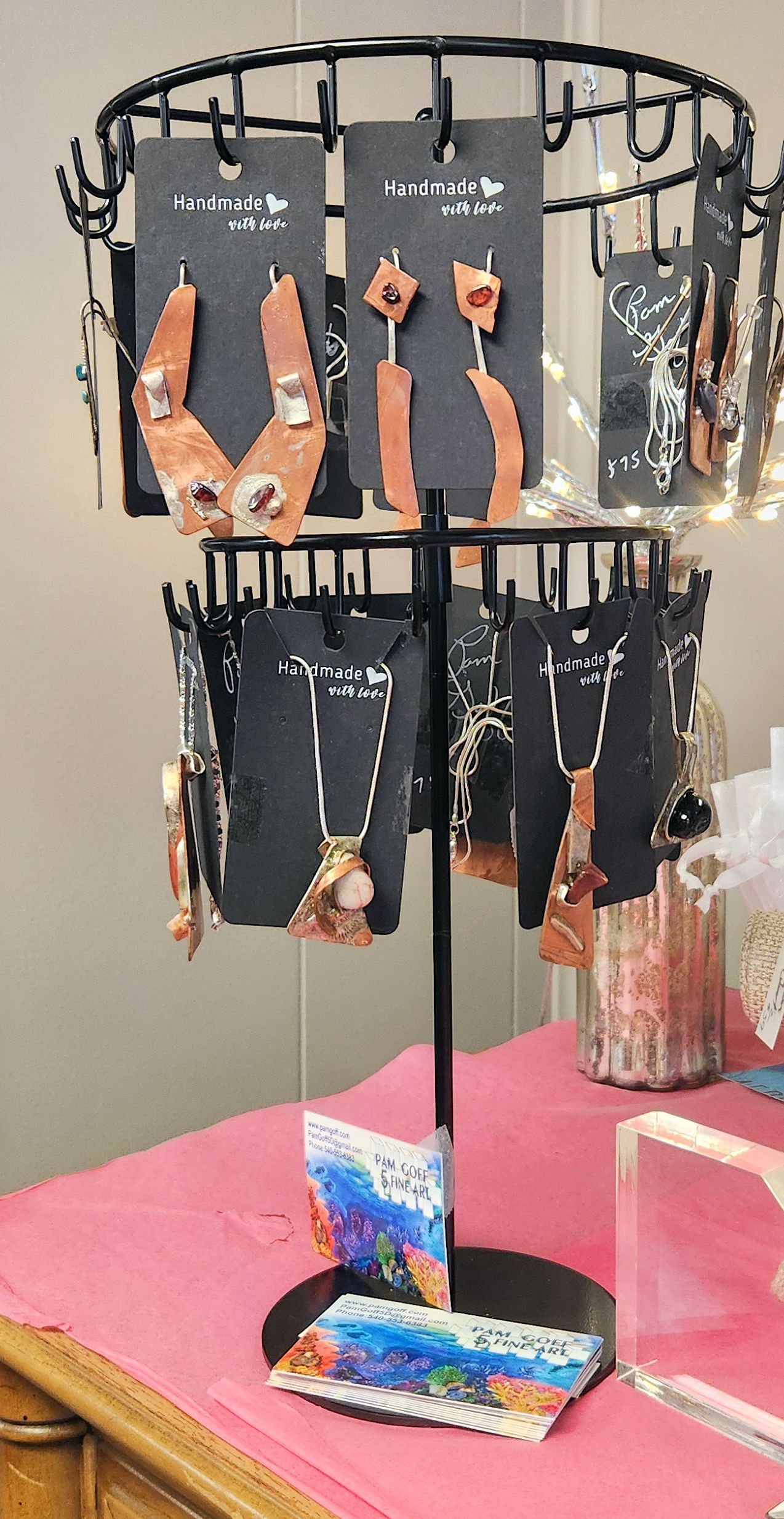 I have jewelry for sale at A New Leaf Gallery in Floyd, at Ponnie's Boutique in Shawsville, and at Local Roots Hair Company in Dublin. I was so flattered when Ponnie had her model wear a pair of my earrings at her fashion show.