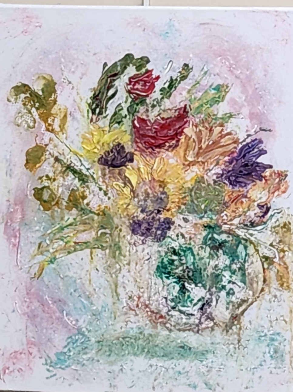 Such a great event. Two days of market fun, meeting new people, and seeing the creative work of fellow artists. Friday night was Paint Night at the museum. A room full of artists painting a flower arrangement, using a credit card as our painting tool. What a blast!