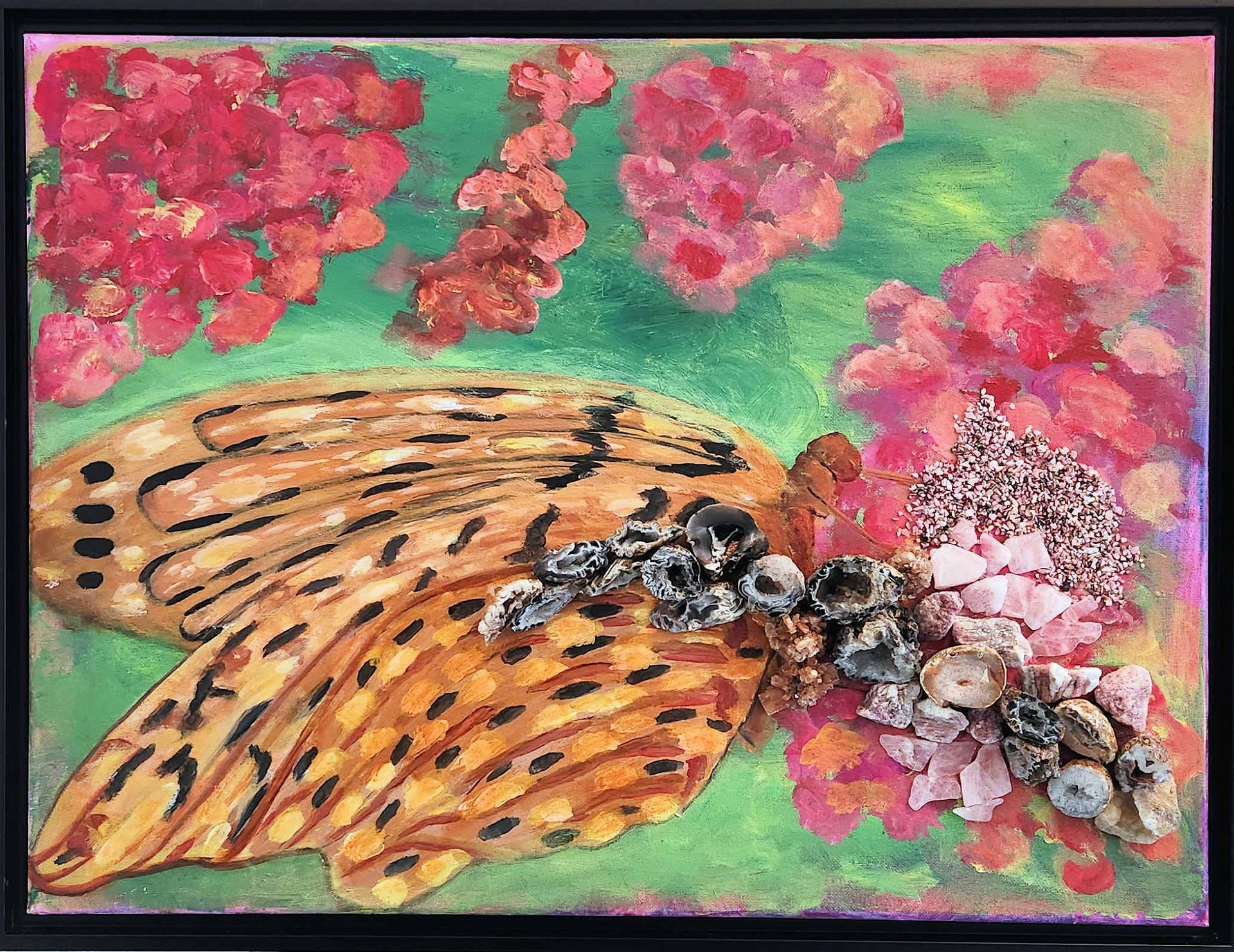 I am honored to once again be a member of the Simply Elemental Art Show at the VT Hahn Gardens. My display is "Stopping for a Sip at the Butterfly Garden. I created two butterflies and ten sets of flowers.