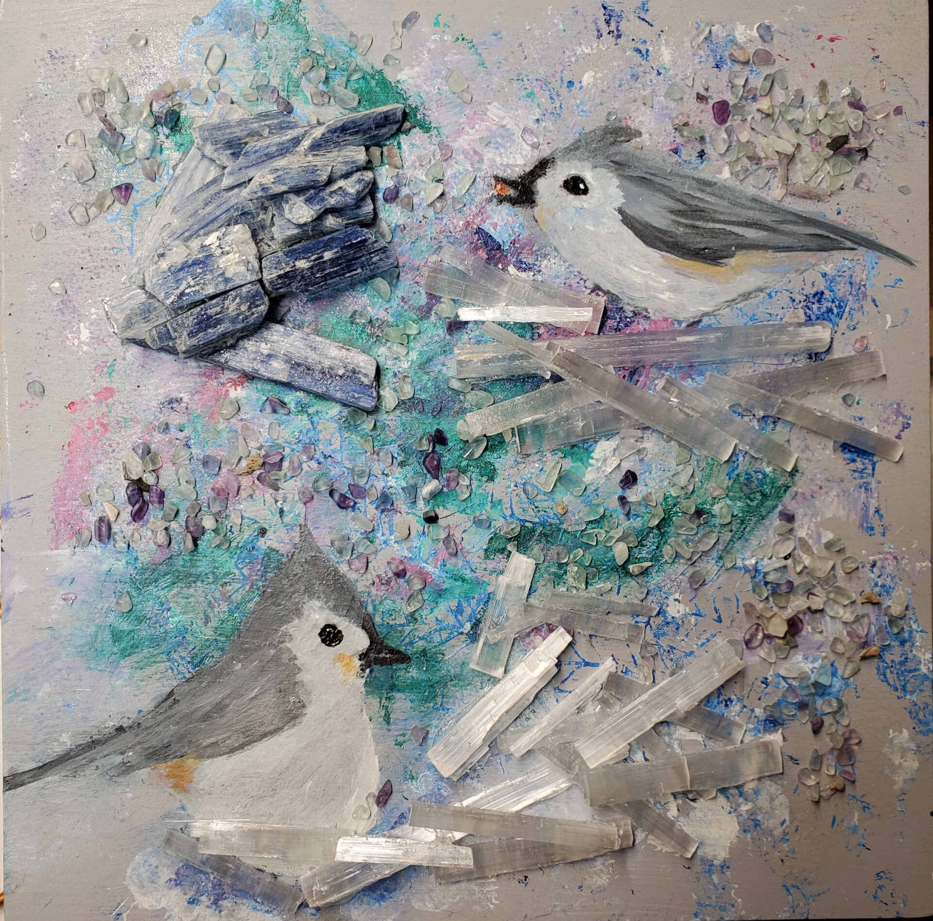 How do you keep going during a period of intense sadness? My initial response is to pull the covers over my head and wish the world away. My dear husband Dave fought a three-year battle with pancreatic cancer. I watched him go from an energetic, intelligent, and positive motivator to a shell of a man during his last months. The helplessness and inevitability smothered me. Prayer and friends sustained me. Thoughts of picking up a brush or playing with my rocks seem impossible, yet I know those are necessary steps to continue living beyond the loneliness. This is my start, one rock at a time. The ice series, a work in progress.