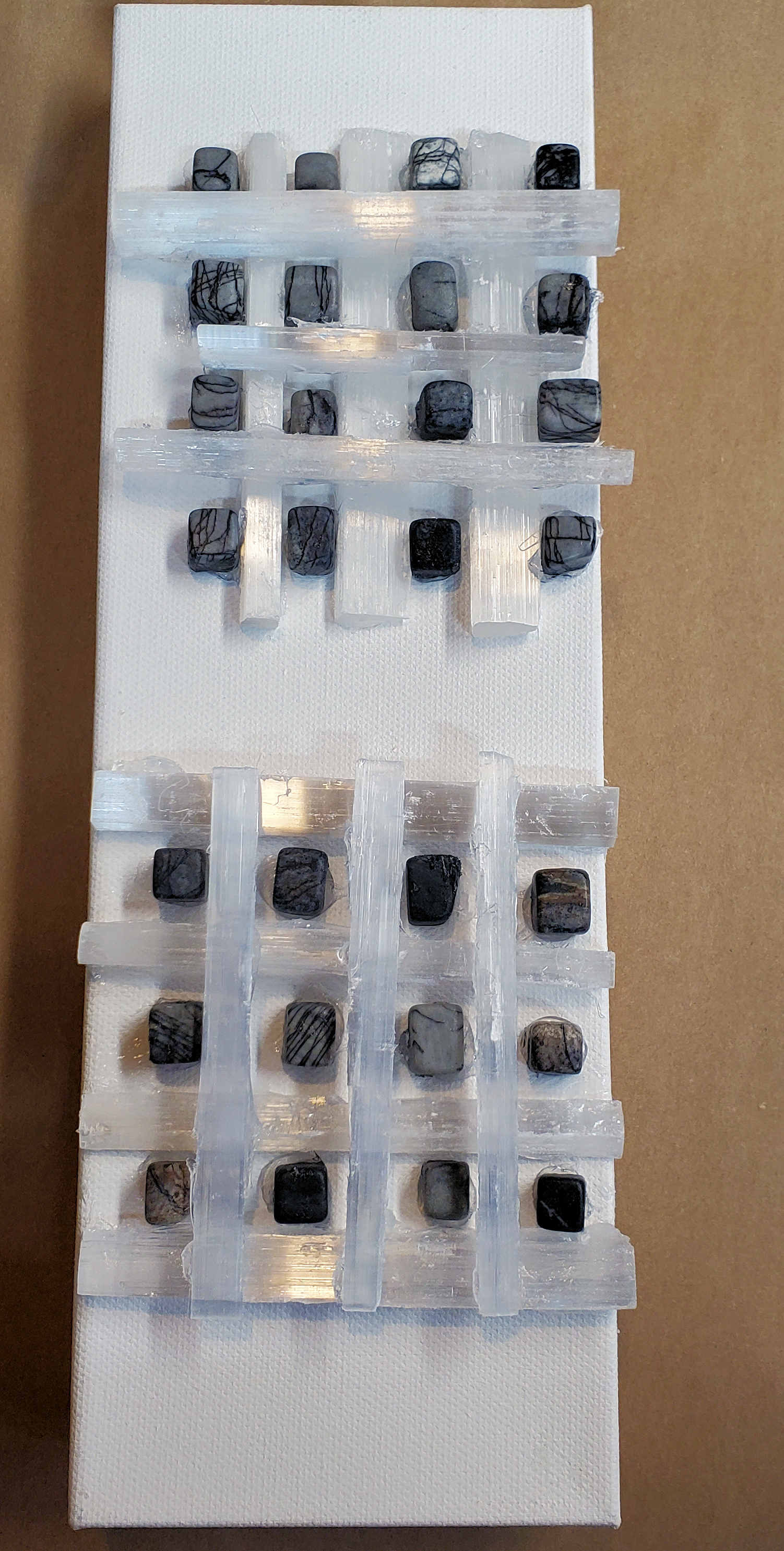 How do you keep going during a period of intense sadness? My initial response is to pull the covers over my head and wish the world away. My dear husband Dave fought a three-year battle with pancreatic cancer. I watched him go from an energetic, intelligent, and positive motivator to a shell of a man during his last months. The helplessness and inevitability smothered me. Prayer and friends sustained me. Thoughts of picking up a brush or playing with my rocks seem impossible, yet I know those are necessary steps to continue living beyond the loneliness. This is my start, one rock at a time. The ice series, a work in progress.